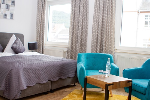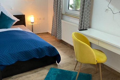 Unsere Doppelzimmer sind mit gemütlichem Boxspringbett, eigenem Badezimmer, Schreibtisch, Schrank und Fernseher ausgestattet. Außerdem steht Ihnen unser kostenfreies Hotel-WLAN zur Verfügung.
