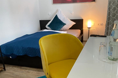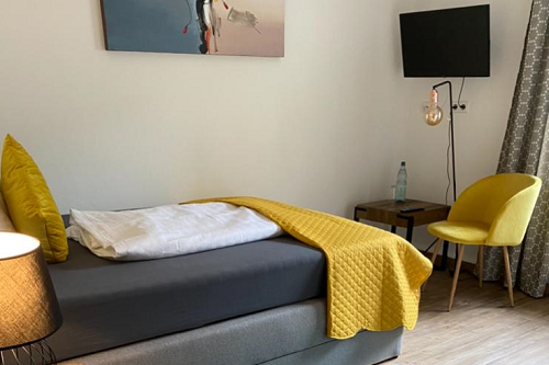 Unsere Einzelzimmer sind mit gemütlichem Boxspringbett, eigenem Badezimmer, Schreibtisch, Schrank und Fernseher ausgestattet. Außerdem steht Ihnen unser kostenfreies Hotel-WLAN zur Verfügung.