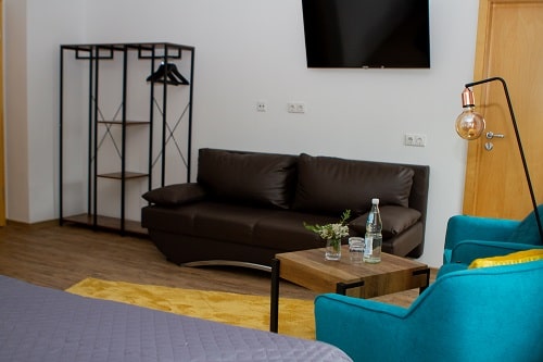 Unsere Familien bestehen aus zwei Räumen mit Durchgangstür (verschließbar) und sind mit gemütlichen Boxspringbetten, eigenem Badezimmer, Schreibtisch, Schrank und Fernseher ausgestattet. Außerdem steht Ihnen unser kostenfreies Hotel-WLAN zur Verfügung.